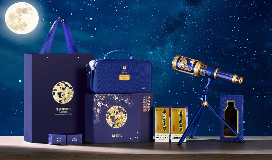 此次與茅臺文旅攜手打造的這款中秋禮盒,將望遠(yuǎn)鏡納入其中,藍(lán)金配色,顯茅臺文化典雅,鏡筒融傳統(tǒng)與茅臺元素。禮盒插畫鏤空繪飛天滿月,寓團圓,以深邃視野融合中秋與茅臺文化,致敬追夢人。